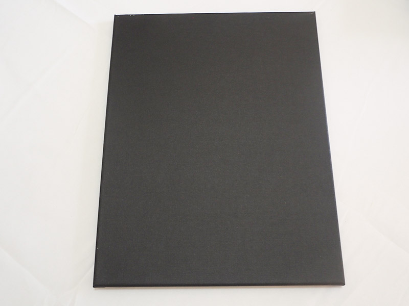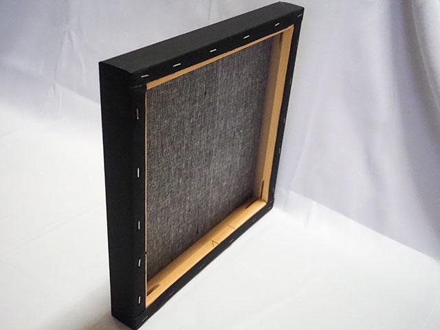 本製品はキャンバス表⾯にあらかじめ黒⾊の塗料を施しており、黒い下地が必要な絵画制作に適しています。厚みは16mmとなります。